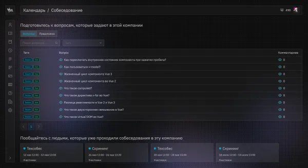 Также в нашем комьюнити ты сможешь посмотреть огромное количество собеседований в реальные компании, они проводятся буквально каждый день