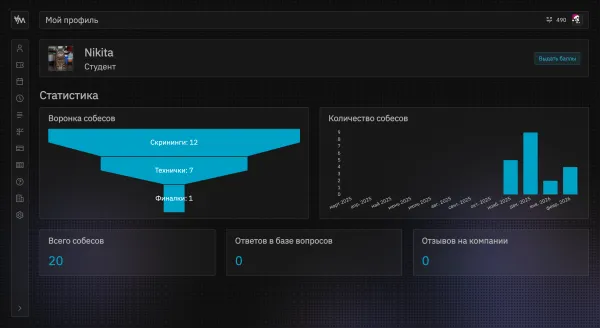 Хочу выразить огромную благодарность Никите и его помошнику Семену, а так же всем тем, кто помогал на собесах, за поддержку и помощь на пути к трудоустройству. У меня был небольшой опыт работы (около полугода) + знание языков JS, Java, Kotlin. Так что практически сразу после составления резюме и легенды, начал искать работу. Цель была пройти 100 собесов, дабы точно найти работу, так же в эту цель входило закрывать все пробелы по знаниям. Примерно к 10 собесу я уже составил свою шпаргалку, которую использовал на собесах, так что по техническим вопросам проблем как таковых не было + всегда помогали ребята в чате. Получилась такая статистика: 14 скринов, 9 тех собесов, 3 оффера. Выбрал крупную компанию, оффер 260к+ и приступил к работе. В первые два месяца было сложно, долго разбирался в проектах, работал до ночи, но Никита и Семен помогали по всем вопросам. Сейчас у меня уже прошла испыталка, работаю дальше.